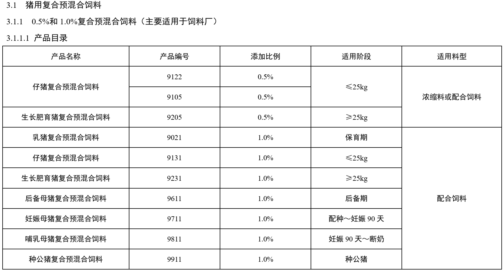 0.5%、1.0%猪用复合预混合饲料